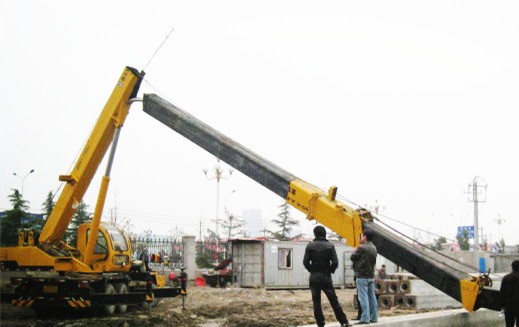 在起吊滿負荷時,只能收回起重臂(由大幅度變小幅度,由長起重臂變短起重臂),不能伸臂或落臂,否則會翻車。例如,在某施工工地,有一輛Q51型汽車起重機在回轉半徑為305m時可以起吊3t。這時起重機起吊2.6t并不超負荷,但是,由于信號的錯誤,指揮者叫司機起點臂,司機誤聽為落臂,就造車翻車事故。
