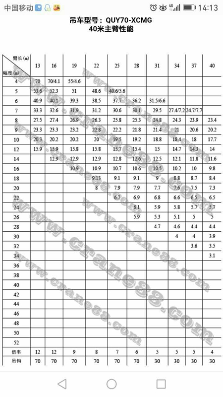 標題:徐工70履帶吊性能表