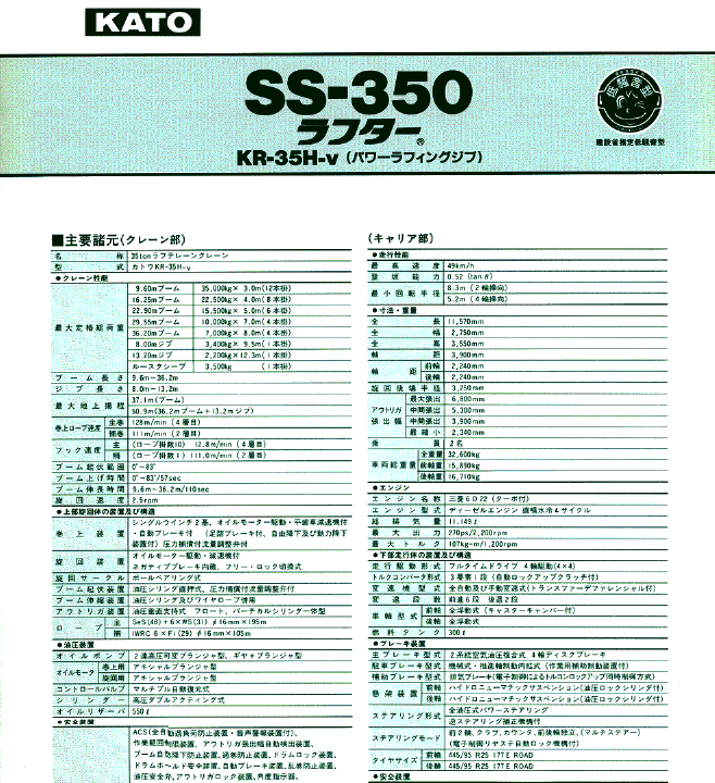 上一篇:KATO 加藤SS350SPV起重機性能表
