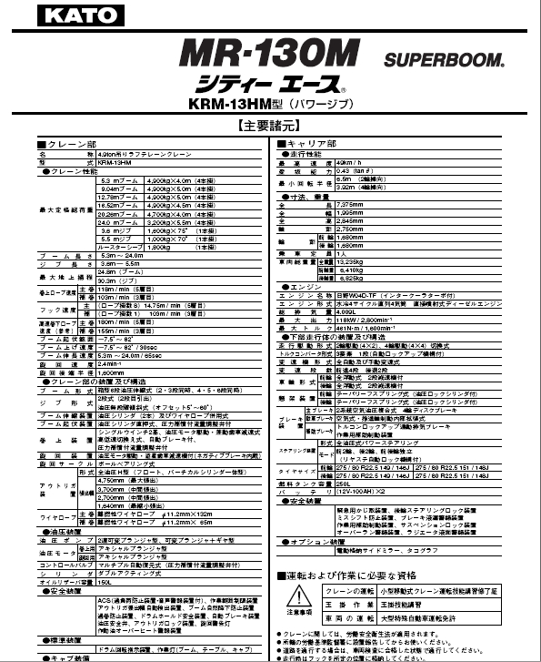 上一篇:KATO 加藤MR100MSP起重機性能表