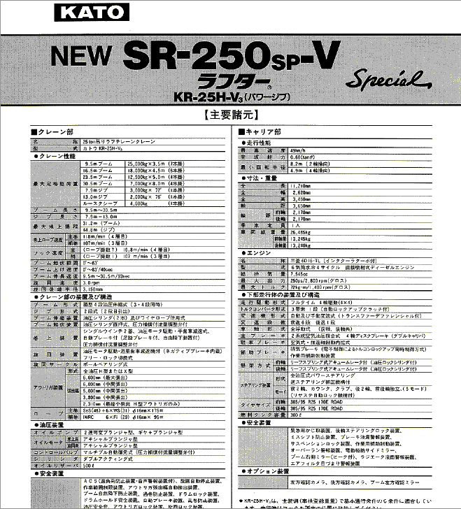 標題:KATO 加藤SR250SPV起重機性能表