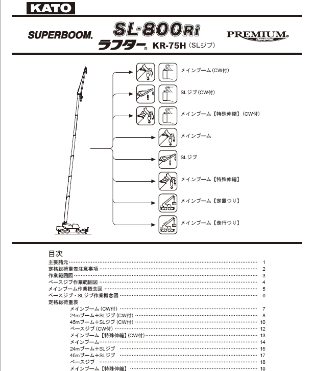 標題:KATO 加藤SL800RI起重機性能表