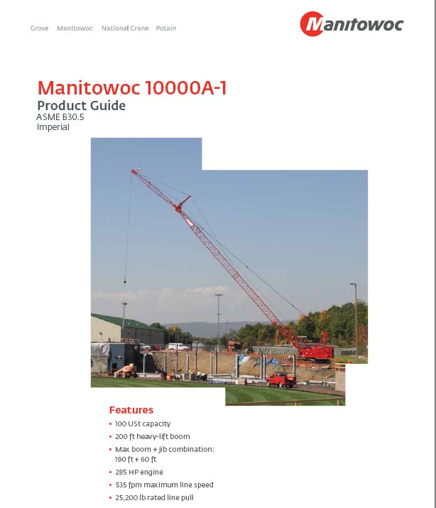 標題:馬尼托瓦克10000A-1履帶起重機性能表