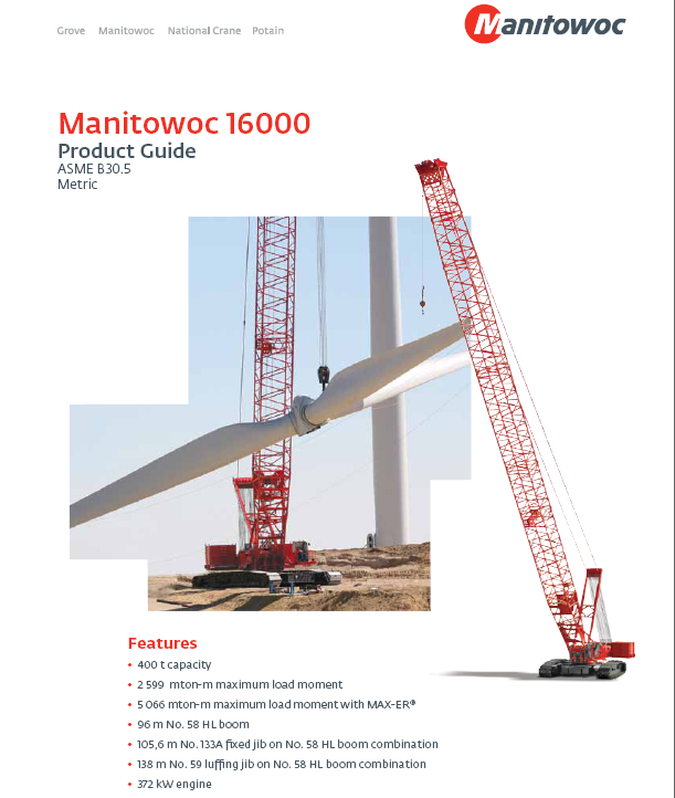 標題:馬尼托瓦克16000-M履帶起重機性能表
