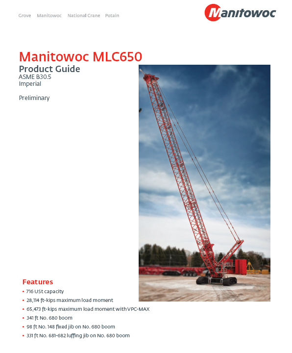 標題:馬尼托瓦克MLC650履帶起重機性能表