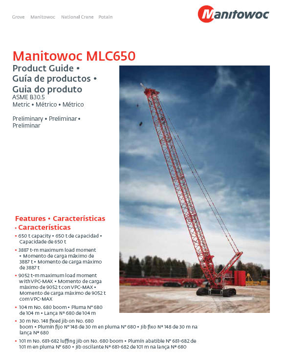 標題:馬尼托瓦克MLC650-M-M履帶起重機性能表