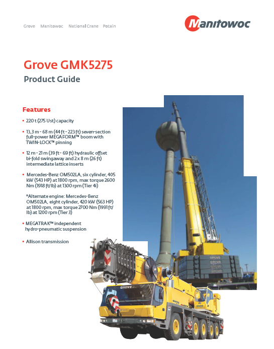 標題:格魯夫GMK5275全地面起重機性能表
