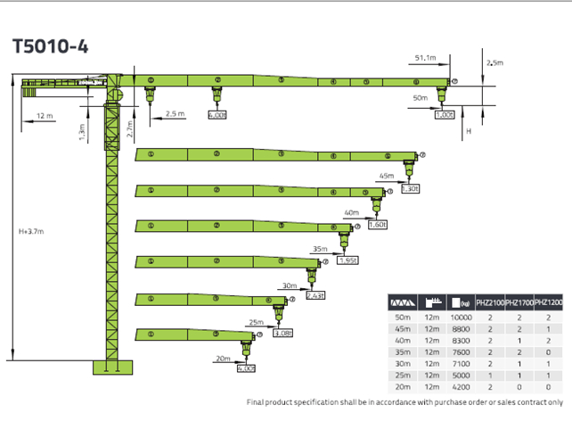 標題:中聯T5010-4起重機性能表