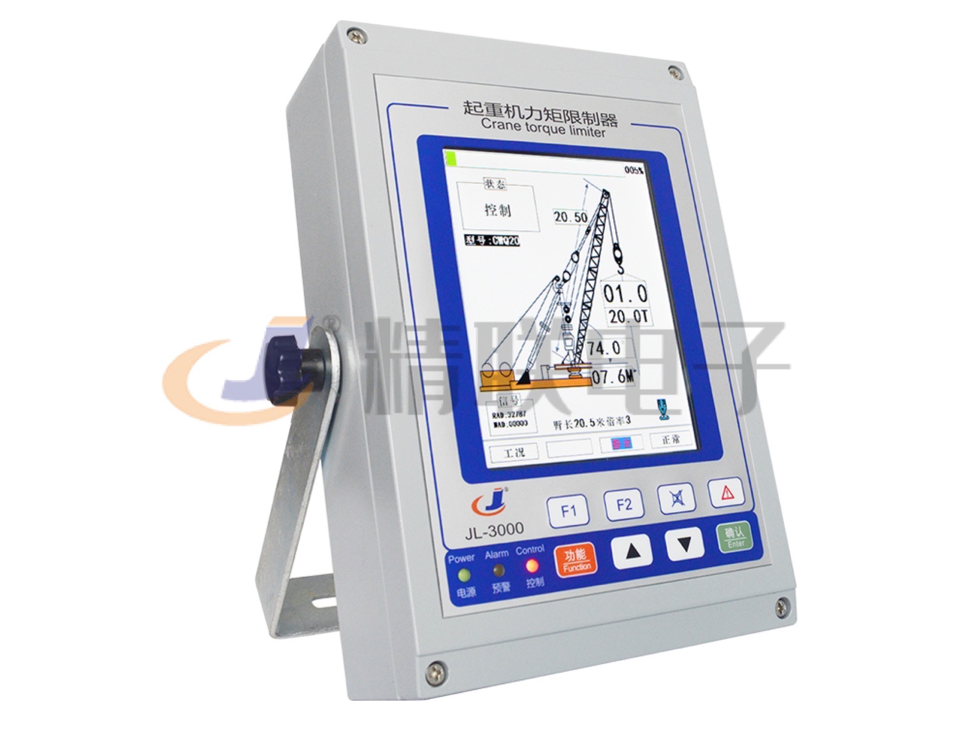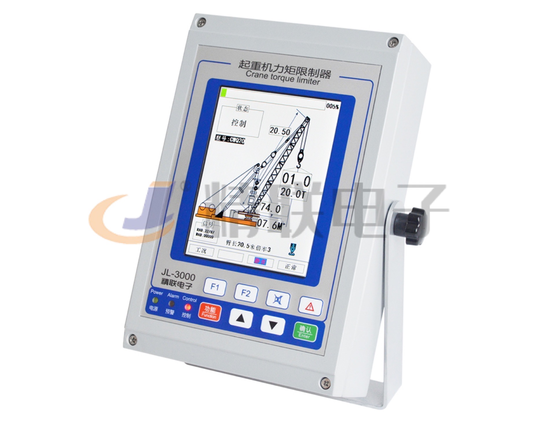 采用進口工業彩色液晶屏,分辨率高(640*480),能一屏顯示用戶關心的所有數據,如:實際起重量、額定起重量、載荷率等;或根據需要只顯示特定參數,還可數字式與圖形顯示相切換;所有操作均有文字提示,具有良好的人機對話界面;