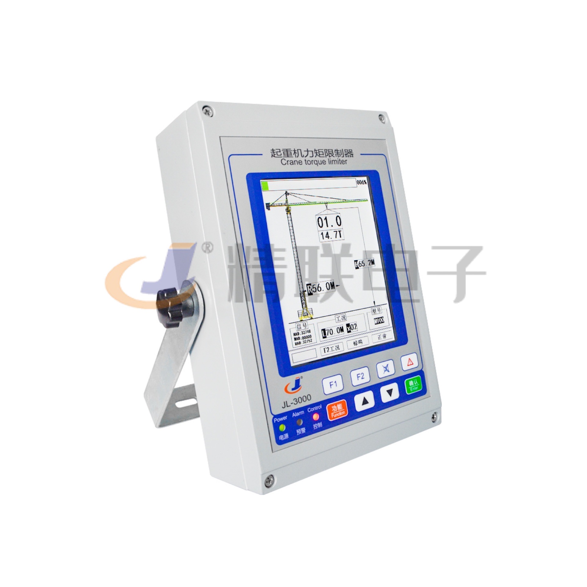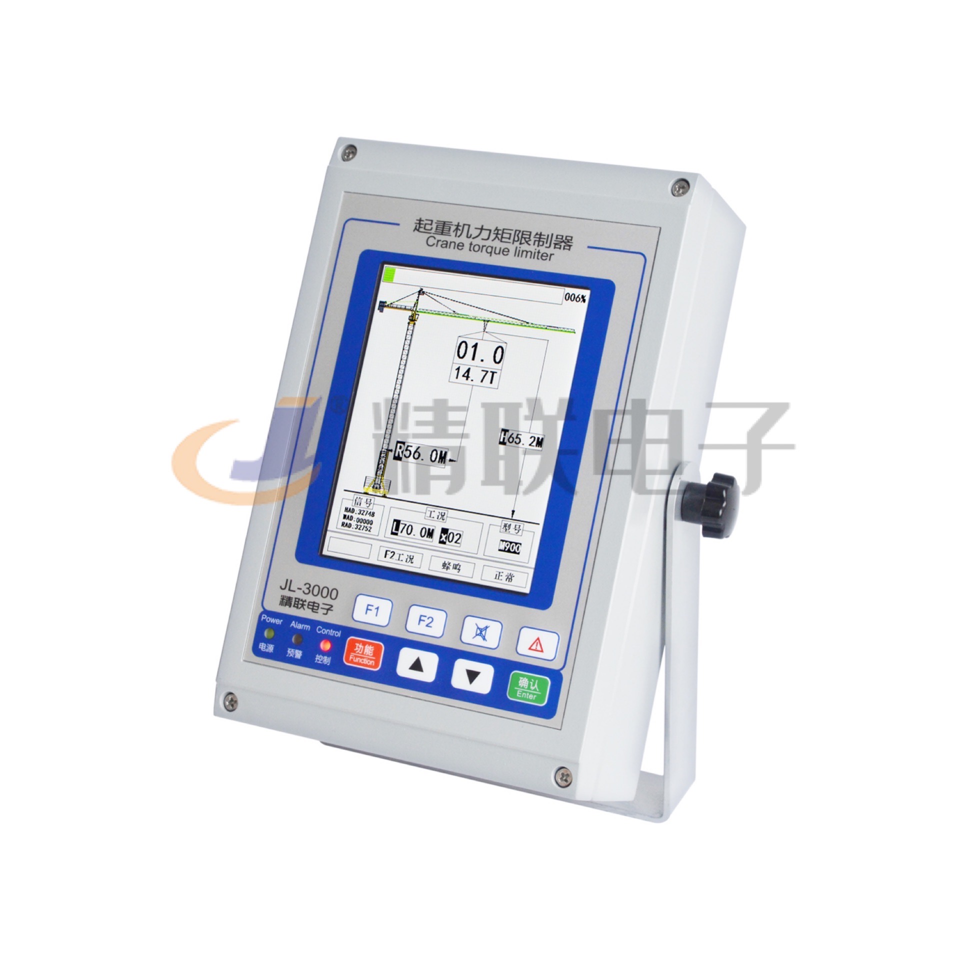 采用進口工業彩色液晶屏,分辨率高(640*480),能一屏顯示用戶關心的所有數據,如:實際起重量、額定起重量、載荷率等;或根據需要只顯示特定參數,還可數字式與圖形顯示相切換;所有操作均有文字提示,具有良好的人機對話界面;